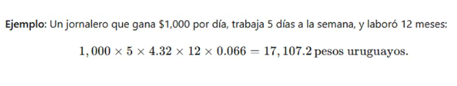 En este caso, para determinar el jornal diario líquido se multiplica el promedio de días trabajados semanalmente por 4,32 (semanas en un mes), y luego por los meses trabajados.
